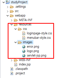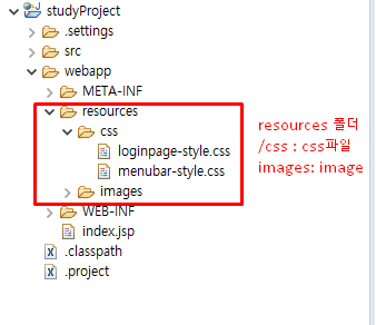 resources : 각종 css파일 및 image파일