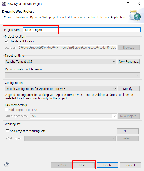 프로젝트 이름은 알아서 지어주세요