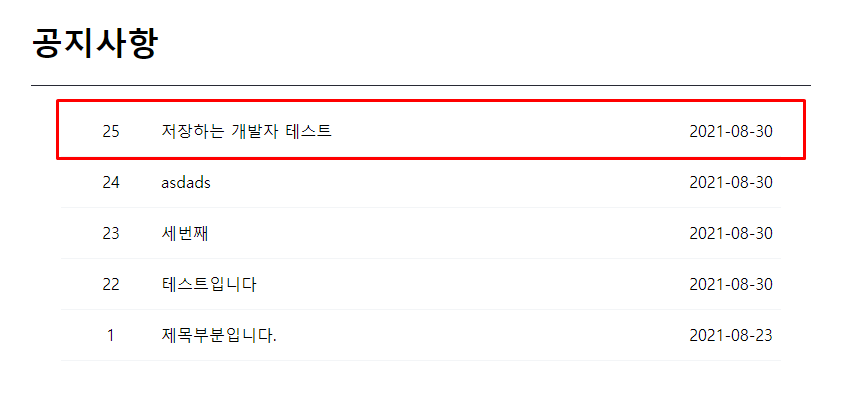 이번에는 공지사항 목록 조회, 공지사항 글쓰기, 공지사항 글 상세 페이지작업입니다.