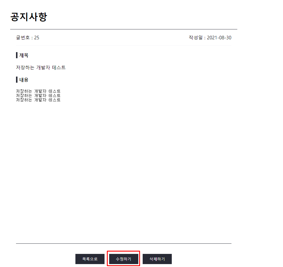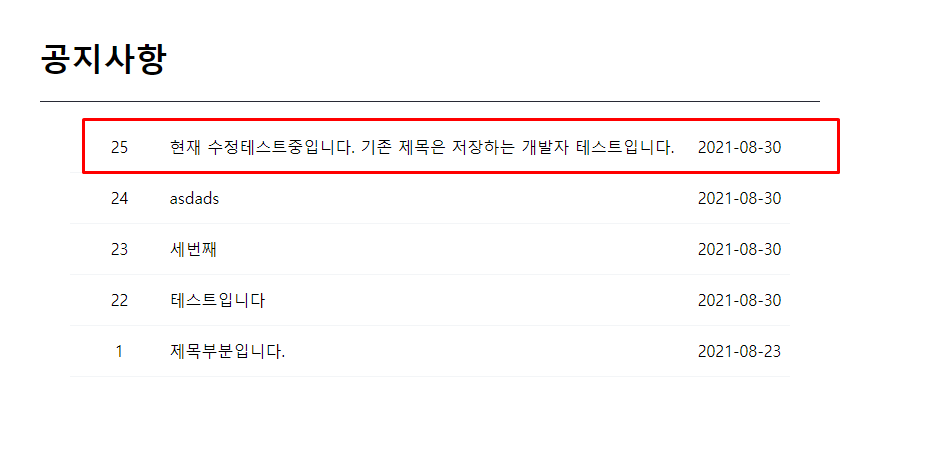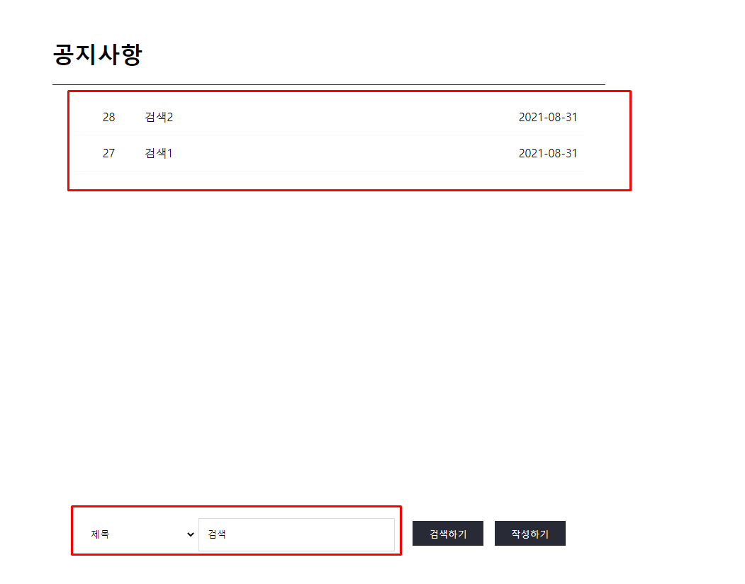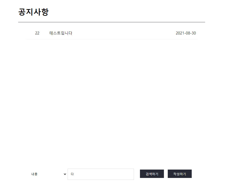 오늘은 공지사항 글수정, 글삭제, 목록 검색을 진행하였다.