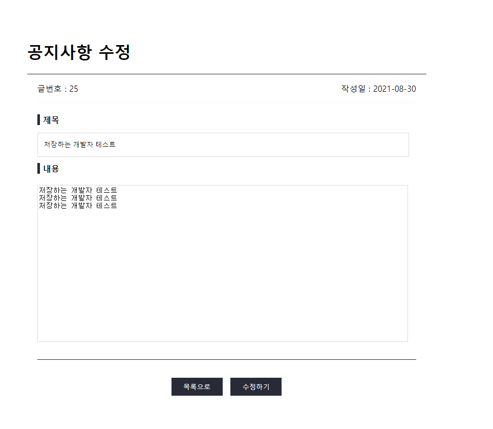 글수정 페이지로 이동하면 글번호, 작성일, 제목, 내용은 기존데이터 불러와 보여진상태에서 진행하기때문이다 .