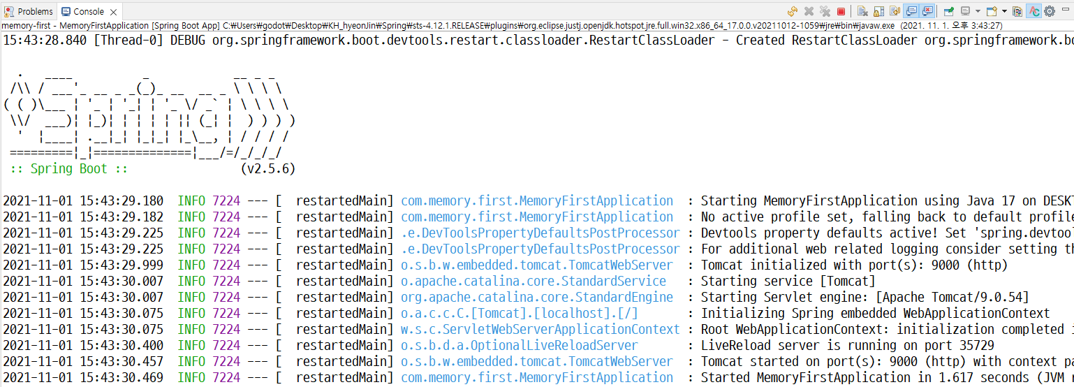 MemoryFirstApplication.java 파일에서 컨트롤+F11 로 서버가동합니ㅏ다.