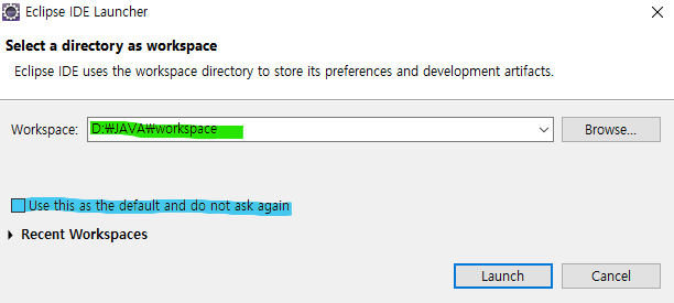 Use this...... again << 다음 실행부터 바로 설정해둔 워크스페이스로 실행되도록 변경