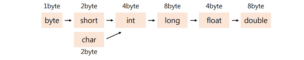 //작은 자료형의 타입을 큰 자료형타입으로 컴파일러가 자동적으로 변경해준다.