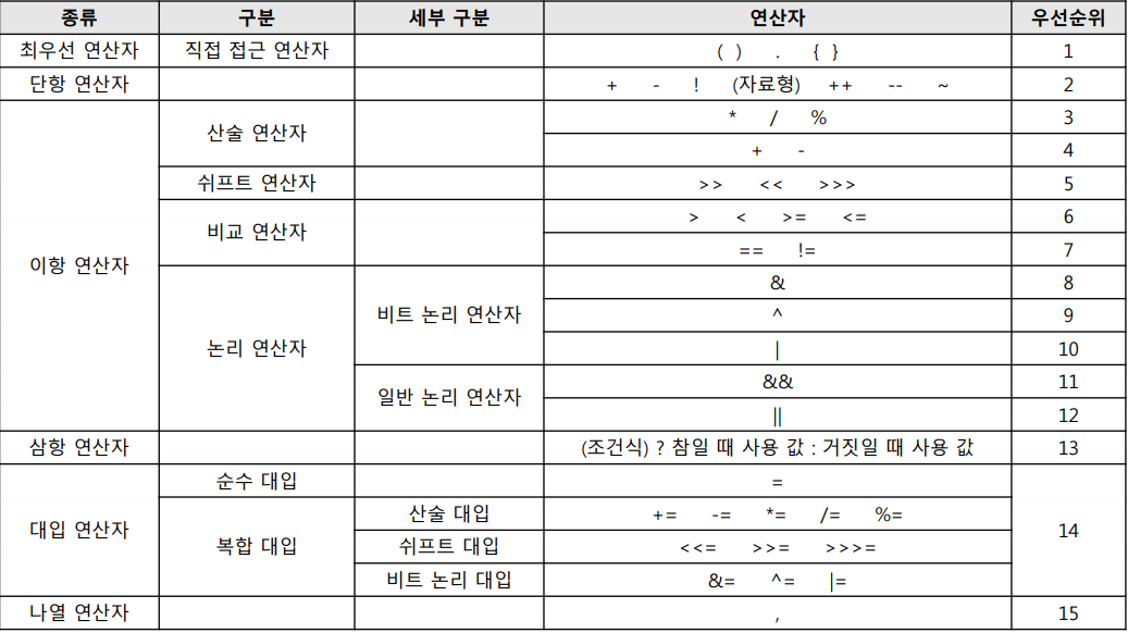 System.out.println(!true); //true지만 부정연산자! 사용하여 값 false