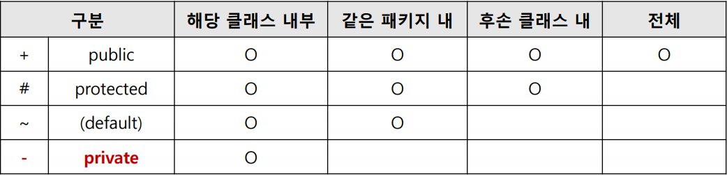클래스 접근제한자