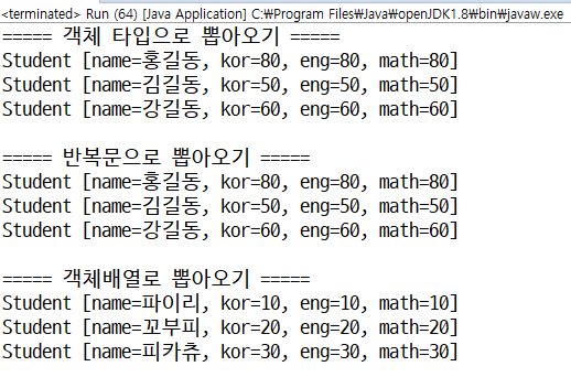 System.out.println("===== 객체배열로 뽑아오기 =====");
