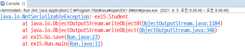 Student 클래스 파일 오픈하고 아래와같이 implements Seriallizable 추가해주면된다.