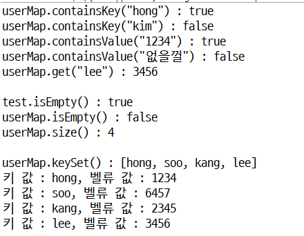 System.out.println("userMap.containsValue(\"없을껄\") : " + result);