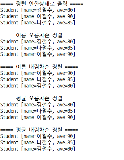 // 기본자료형 오름차순 정의 : o1.getAve() - o2.getAve();